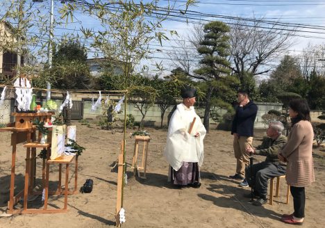 3月26日 快晴 高崎の家 小春びよりの中 地鎮の儀を行いました セカンドハウスみたいな 平屋の家 いよいよ…