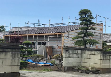 ようやく 別荘風のシルエットが見えてきました。 8/20の完成目指して急ピッチです。 コンクリートスクリーンの…