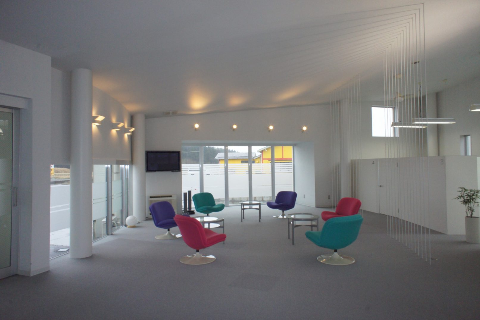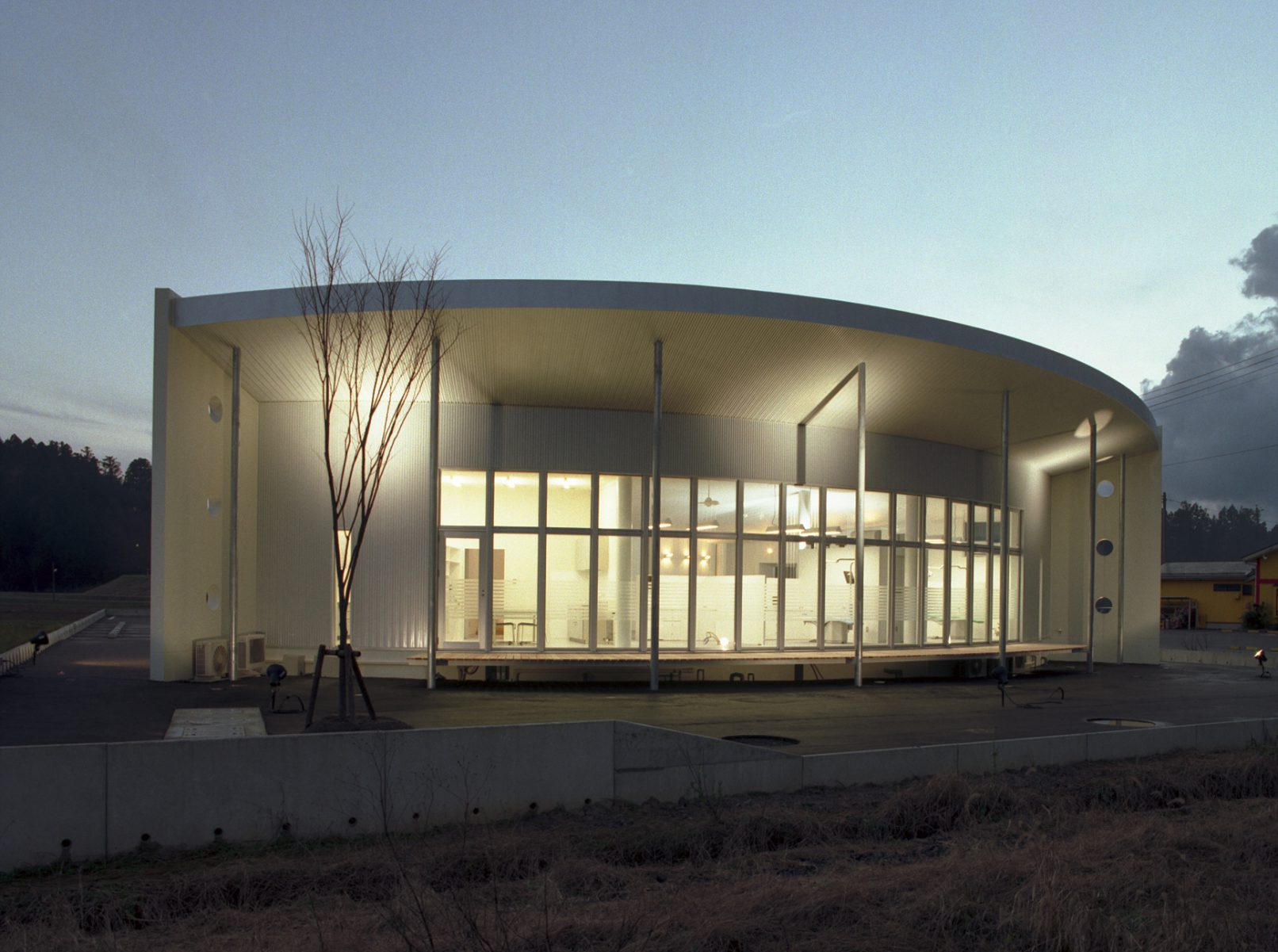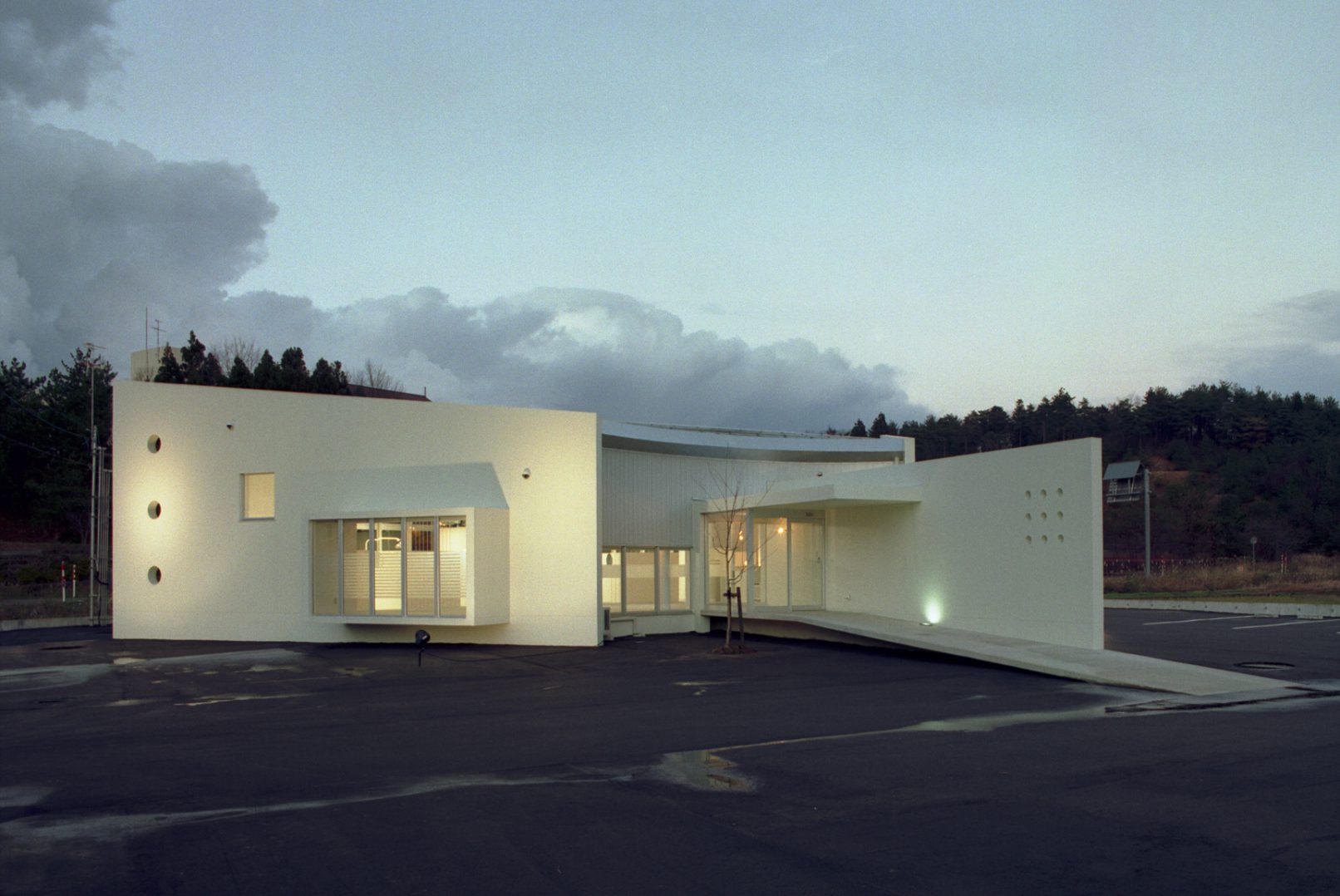 地域の活性化に主眼を置きシンボルとなるデザインとし 又アプローチに焦点をとりそこから放射線状に国道に開く空間とした。